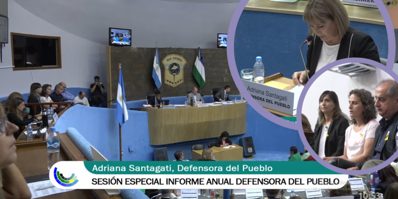 En el día de la fecha en la Ciudad de Viedma, se presentó en la Sesión Especial de la Legislatura de Río Negro el Informe Anual de la Defensoría del Pueblo de Río Negro. El mismo lo llevó adelante la Defensora del Pueblo de la provincia Adriana Santagati y estuvo acompañada por su defensor adjunto Alvaro Larreguy.